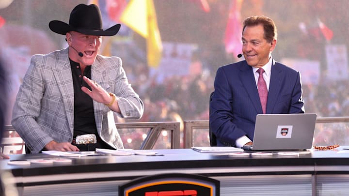 The lights went out at Gaylord Family-Oklahoma Memorial Stadium, and Nick Saban and Pat McAfee stopped dead in their tracks.