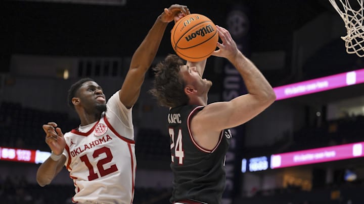 The 11-seed Sooners late Wednesday night handled No. 14 South Carolina 86-74 in the first round of the SEC Men's Basketball Tournament in Nashville. The win advanced OU to a second-round matchup Thursday night with No. 6 Texas A&M, which has already narrowly beaten the Sooners twice this season. And Vegas oddsmakers expect the same outcome for the third time, which would pop the Sooners' already deflated NCAA Tournament bubble.
